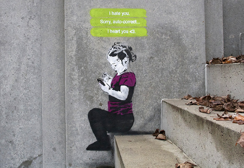 Kroz njegove javne radove, koji veoma podsjećaju na rad Banksyja, umjetnik prikazuje djecu kako vješto barataju smartphoneom, Facebookom ili Twitterom, kako se koriste oznakom #, odnosno „hashtagovima“, kako gunđaju o „autocorrectu“ i obavijestima na Inastagramu.