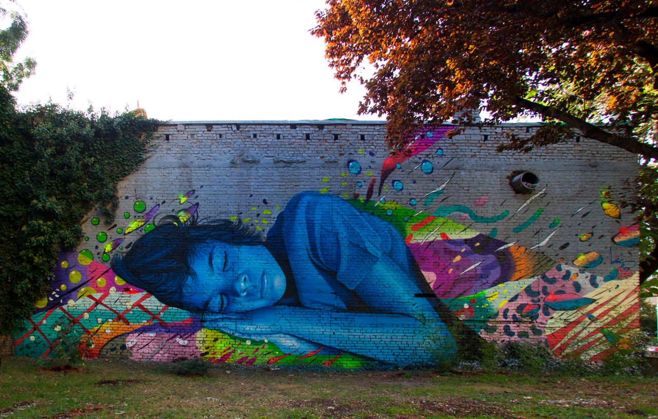 Ovaj impresivan mural nazvan je “Technicolor Dream”, a prikazuje malog dječaka koji spava. Plavi dječak koji sanja šarene snove u šarenoj posteljini za neke je simbol je teške sadašnjosti, budućnosti i realnosti i nade za ljepšim sutra. Osim toga, predstavlja i dječiju nevinost. Drago nam je što Zagreb dobiva sve više radova ulične umjetnosti.