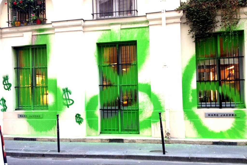 Marc Jacobs još jednom se našao na meti francuskog grafiti umjetnika Kidulta, a ovoga puta nastradala je njegova pariška trgovina. Naime, poznati umjetnik po cijeloj dužini prozora Jacobsove trgovine ispisao je "686$" neonsko-zelenom bojom. Ovo nije prvi put da je Kidult "napao" Jacobsa, pa je tako prošle godine u svibnju na fasadi njegove trgovine u New Yorku ispisao "Art". Jacobs je odlučio iskoristiti ovaj čin u svoje svrhe pa je fotografiju Kidultovog djela printao na bijele majice koje su prodavane po cijeni od 686$.