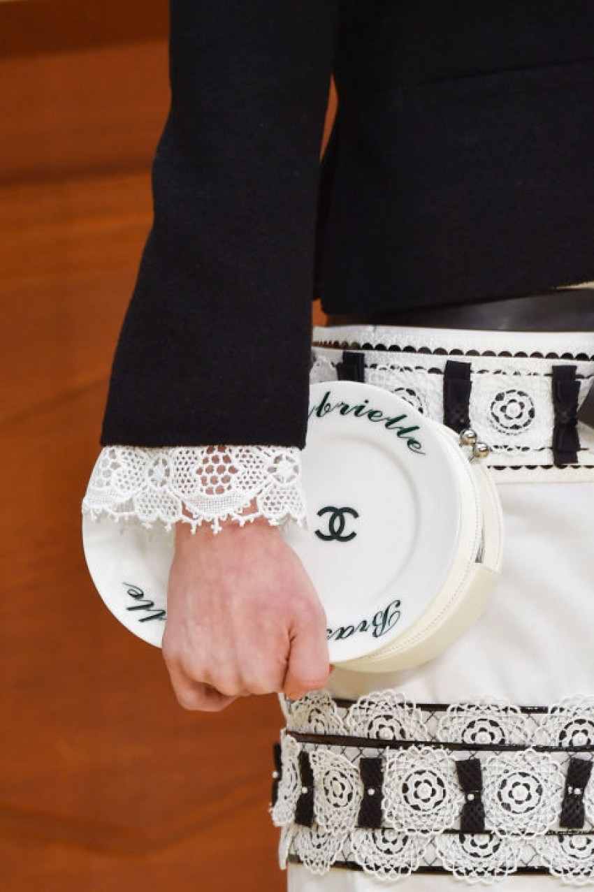 Kao i posljednjih nekoliko sezona, Lagerfeld se poigrao otkačenim detaljima koji su se savršeno uklopili uz njegov damski look. Primjerice, dizajnirao je haljinu koja izgleda kao sloj salveta, clutch torbicu s dva keramička tanjura te torbu koja izgleda kao Chanelova jaknica...