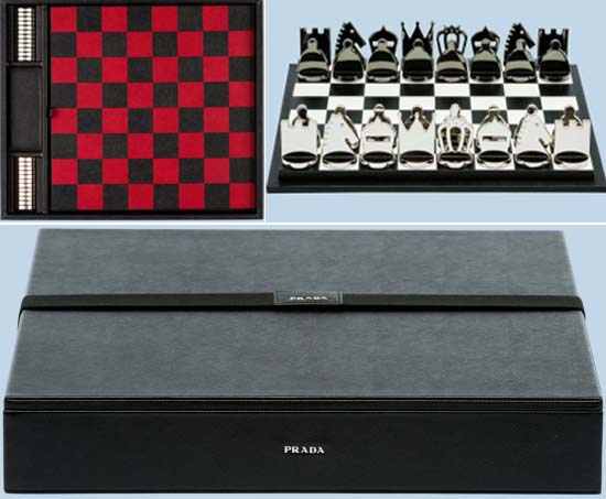 Dama i šah samo su neke od igara koje dobijete u kompletu o crnoj, bijeloj, i crvenoj Saffiano koži te pripadajućim metalnim figuricama.