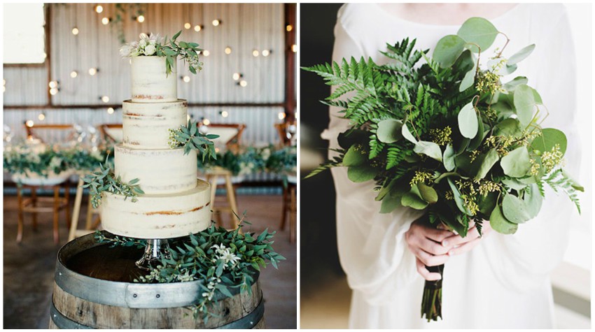 Zaboravite na svijeće, zelenilo vlada ove sezone! Od buketa pa sve do dekoracija po stolovima i oltaru, zelenilo je ove sezone totalno zamijenilo tradicionalno cvijeće.