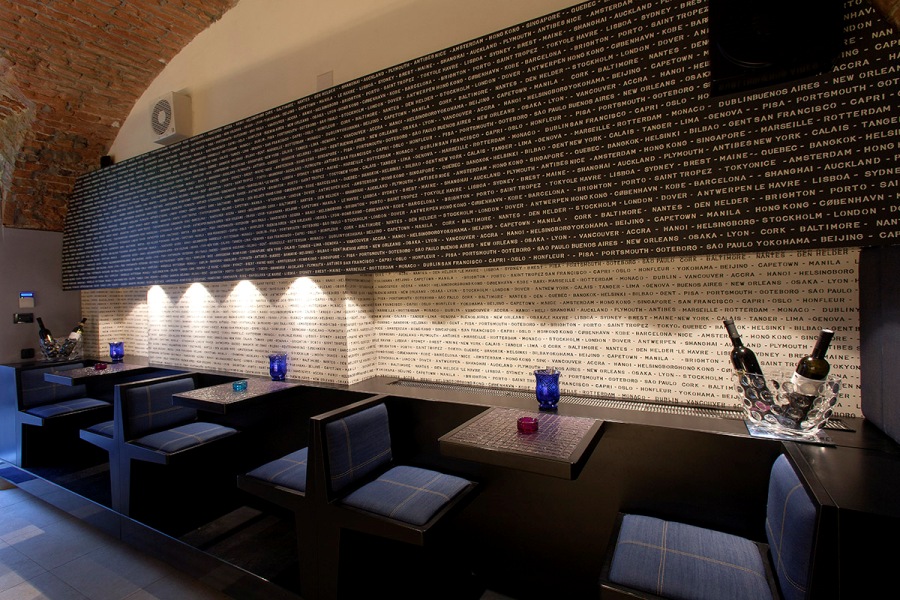Projekt prostora je radio arhitekt Damir Radaković, a samo uređenje je kombinacija industrijskog i modernog. U prostoru u kojem u detaljima i osvjetljenju prevladavaju nijanse plave i ljubičaste možemo naići na strahovito puno zanimljivih detalja poput šanka s raznim fotografijama, dva ručno rađena lustera napravljena od raznih čaša, zanimljivih vaza koje izgledaju kao iz priča u „1001 noći“, stolova sa sedefom koji izgledaju kao dijelovi školjaka, stropa s bočicama parfema i zidova s imenima svjetskih gradova.