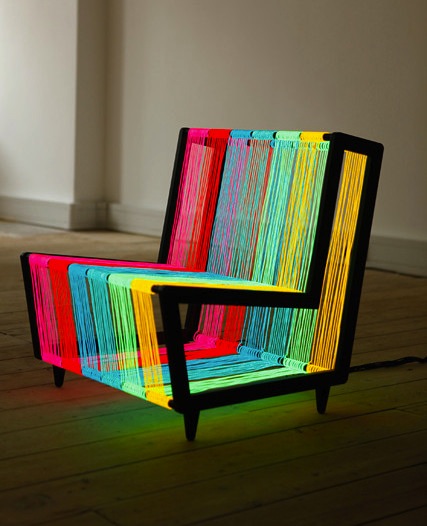 Ako je stolica u obliku kaktusa najčudniji komad namještaja koji ste vidjeli, evo nečega što bi također moglo ući u konkurenciju - svijetleća disko-stolica u različitim bojama. Idealna za kućne zabave ova stolica izrađena je od 200 metara žice koja svijetli u duginim bojama, a može se i podesiti da se svjetla naizmjenično uključuju i isključuju.