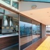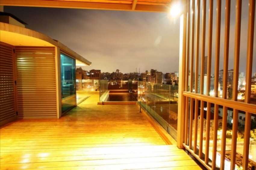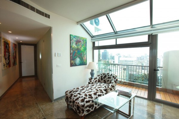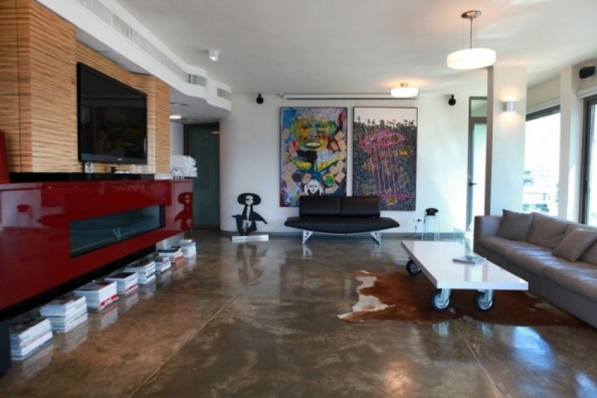 Velika terasa s pogledom na grad, prostrani interijer i impresivna umjetnička dijela čine ovaj životni prostor gostoljubivim, odnosno mjestom gdje kreativnost susreće visok životni standard. Cijeli stan se zasniva na jednom zakrivljenom zidu koji odvaja životnu zonu od spavaće sobe i privatne zone.