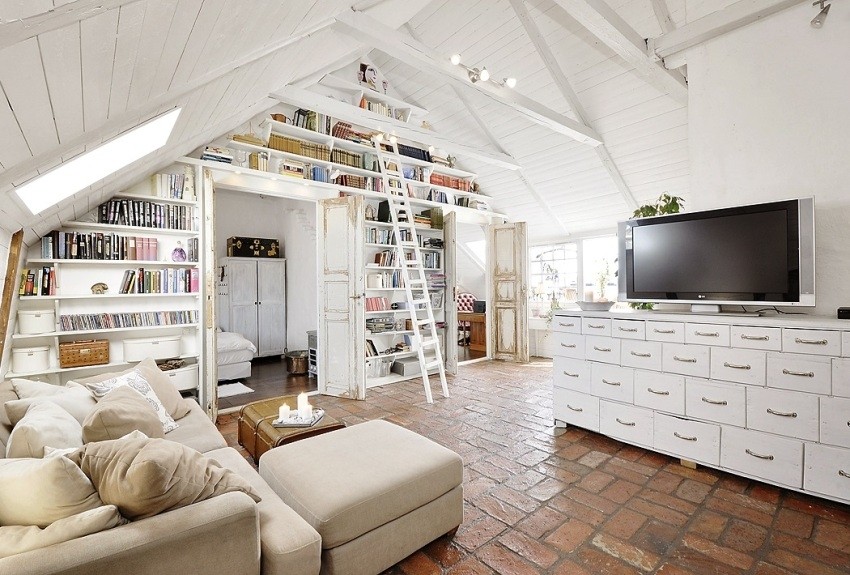 Danas vam donosimo predivan stan u potkrovlju koji nas je očarao svojim shabby chic uređenjem i toplinom. Sanjivi životni prostor od 135 metara kvadratnih ispunjen je svjetlom i prozračnošću zbog bijelih zidova i otvorenog prostora. Zanimljivi detalji poput starinske lanterne u kuhinji, kovčega u dnevnoj sobi koji ima ulogu stolića i mjedenog pribora za jedenje čine ovaj stan pravom vintage oazom.