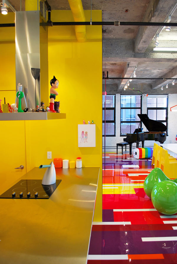 Boje čine temelj prostora dajući mu razigranost i razbijajući bjelinu koja vlada potkrovljem. Inspirativan za samog umjetnika, stan je prepun predmeta, boja, tekstura i ogledala dok mu je jedino spavaća soba u jednoj boji – žarko žutoj.