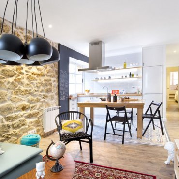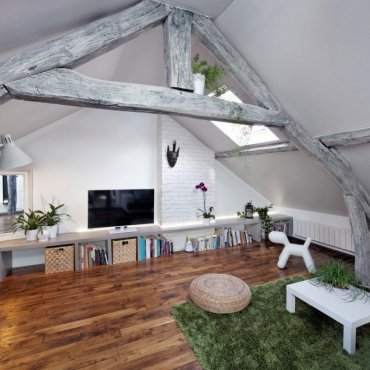 Moderno pariško potkrovlje začinjeno rustikalnim stilom