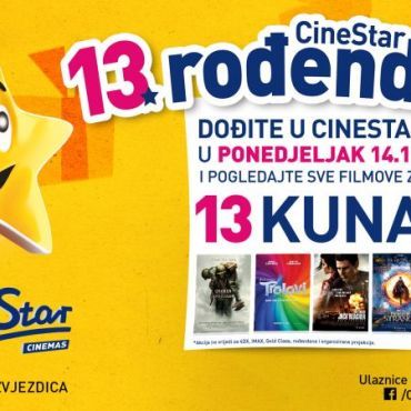 Povodom svog rođendana Cinestar časti sve filmoljupce ulaznicama za 13 kuna